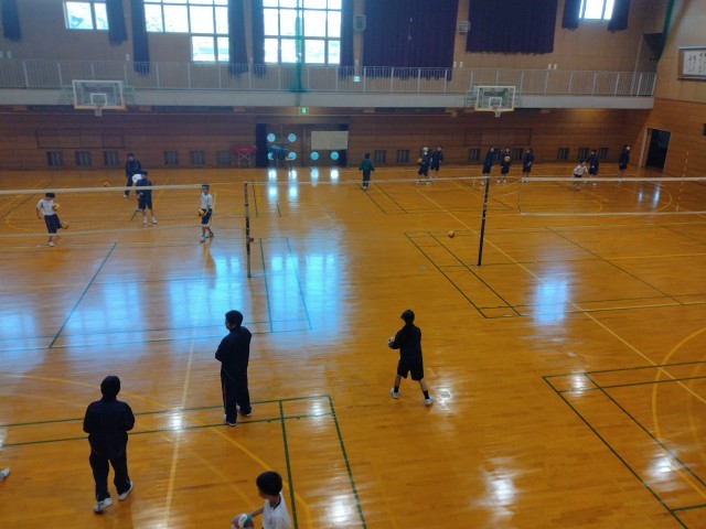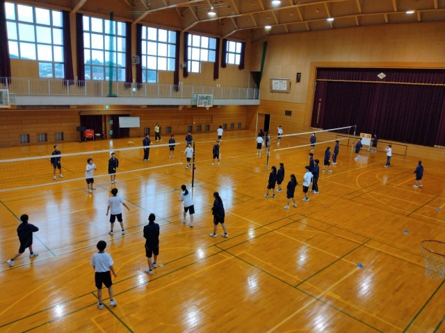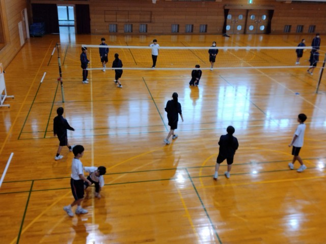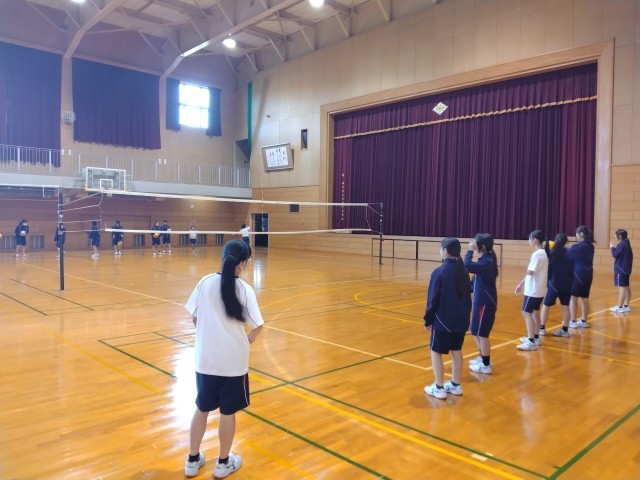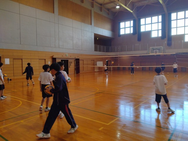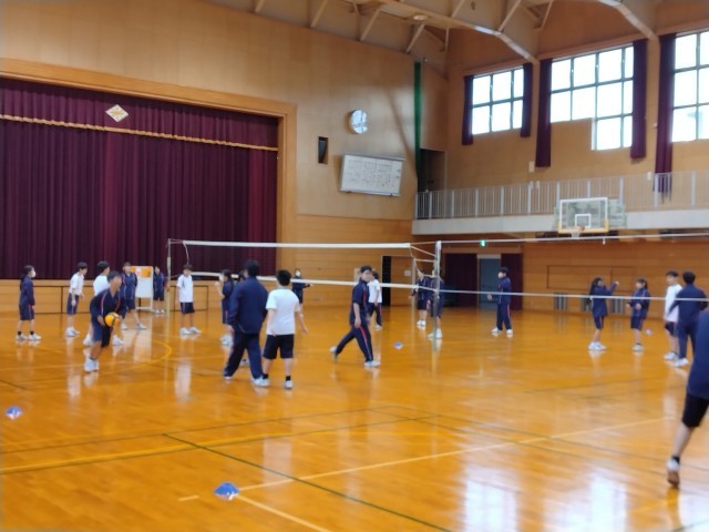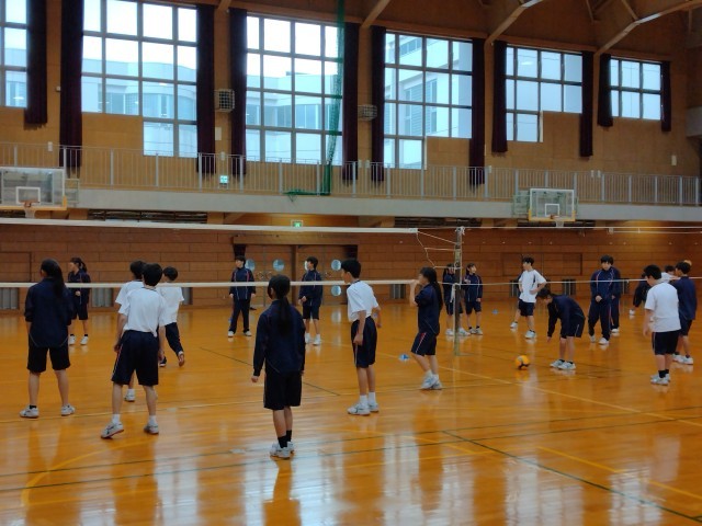 5時間目、体育館では1年2組がバレーボールの授業中でした。