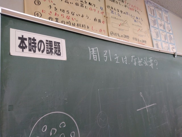 1組は理科。黒板には「滑車」の文字が。「エネルギーの変換と保存」も。95%文系人間の自分には苦手だった分野。3年生諸君には、がんばって得意としてほしいところ。
