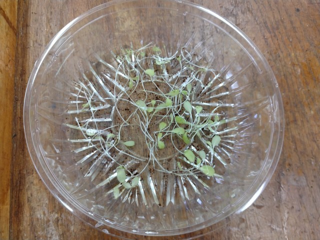 以前に播種(はしゅ)したレタス。大事な大事な間引き作業について学習中。訪問した際は、皆プリントに取り組んでいました。じっくりと教科書を見て、まずは知識を注入中です。
