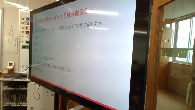 現在進行形が用いられているチャットのやり取りをベースに、読み取り作業をしています。積極的に答えようとする姿が散見されました。