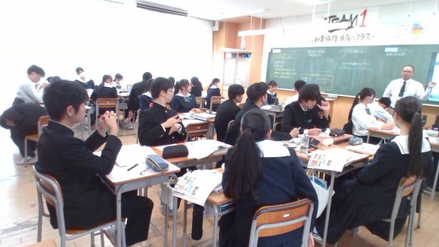 2組は国語。訪問した時は、式子内親王の著名な歌「玉の緒よ・・・」について、教師と生徒とのやり取りが行われていました。新古今和歌集に優美で絵画的な歌を沢山残しているので、ぜひ他の歌も味わってもらいたいところ。