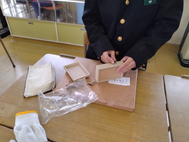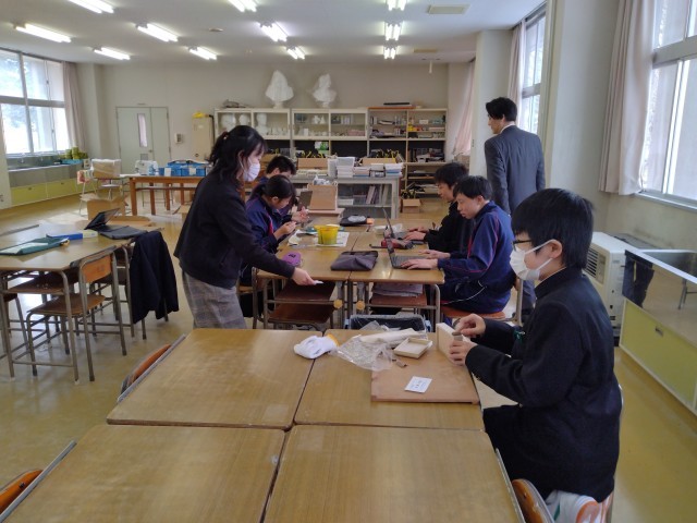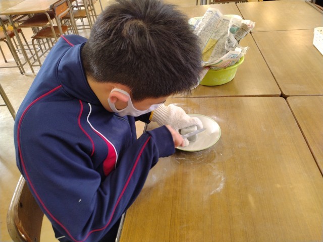 ※3年2組の皆さんは美術室で石彫に取り組んでいたようです。後日、また訪問いたします。