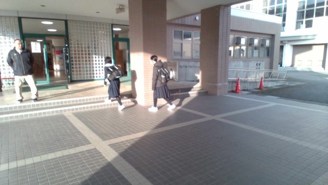 生徒は、給食後12:40を目途に下校を開始します。午後からは、市内の多くの教育関係者が来校しますので、学校周辺の往来にご留意ください。