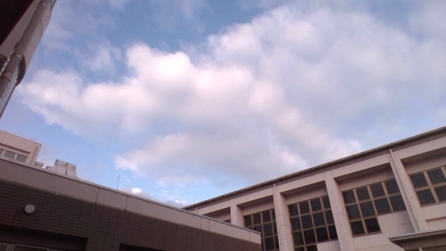 ドクターから「骨(=右足小指)が変形したままくっつき、皮膚を破ろうとしている」と言われ、そのまま無視されるという恐ろしい夢を見た、目覚めの悪い朝でしたが、見上げる青空にさわやかな気持ちを取り戻しました。あいさつ運動は、1年2組有志の皆さんでした。テスト当日にも関わらず、ありがとうございました。