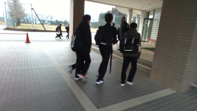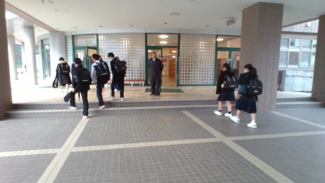 生徒は、給食後12:40を目途に下校を開始します。午後からは、市内の多くの教育関係者が来校しますので、学校周辺の往来にご留意ください。