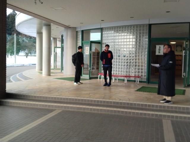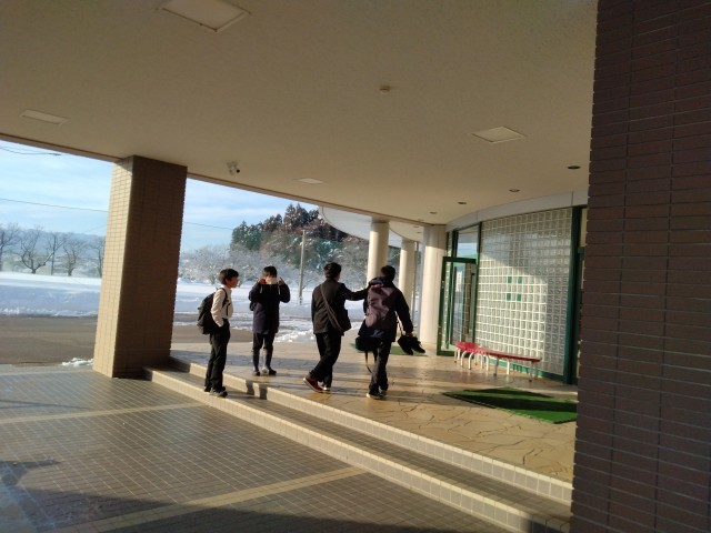 今朝も厳しい冷え込みとなり、生徒玄関付近では転びそうになる生徒もいました。足元には、十分気を付けましょう。
