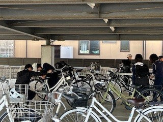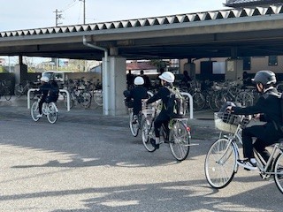 本日より、1年生の自転車通学生も自転車に乗って登校してきました。ヘルメットをきっちりとかぶり、駐輪する場所を確認しました。