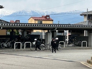 本日より、1年生の自転車通学生も自転車に乗って登校してきました。ヘルメットをきっちりとかぶり、駐輪する場所を確認しました。