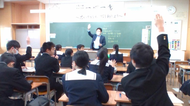 1学年生徒会では、終礼後から30分間、学習会を開催しています。今日は8人の生徒が集まりました。しーんと静まり返った学習室で、どの生徒も集中して、提出課題等に取り組んでいます。