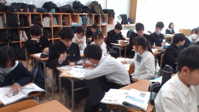 2組様子です。1組同様、宿題等を回収後、書初め大会の準備をしました。