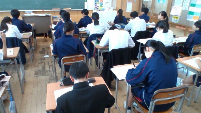 1年生、テストの様子です。夏休みの学習の成果を発揮しています。