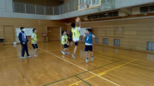 1年生の保健体育の授業の様子です。バスケットボールのゲームを行いました。