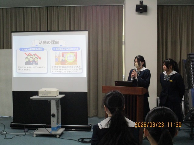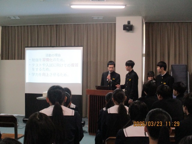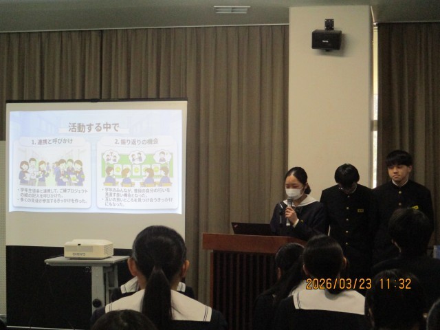 学年生徒会から、各プロジェクトの取り組みの様子とその振り返りについて発表がありました。