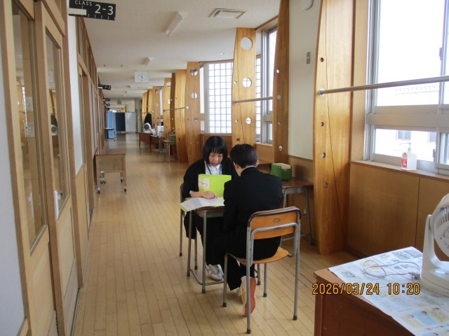 学級担任から通知票を渡され、3年生に向けていろいろ考えている様子が見られました。