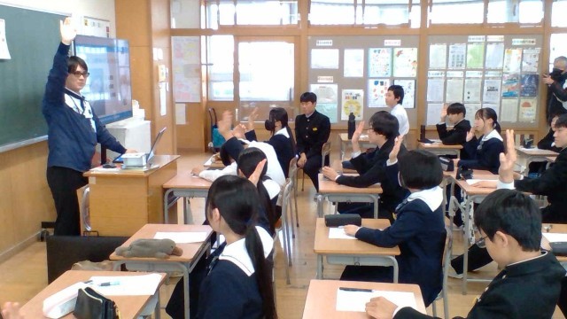 県内の3つの企業にお越しいただきました。それぞれの部会に分かれてお話を聞き、中学時代にがんばったり、興味をもったりしたことが、将来の職業につながっていくことを実感しました。