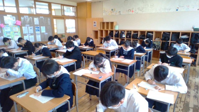 本日4限、今年度第1回となる「学習コンテスト」を実施しました。昨年度から始まったこの取組は、漢字・英単語・計算の基礎学力を競うものです。