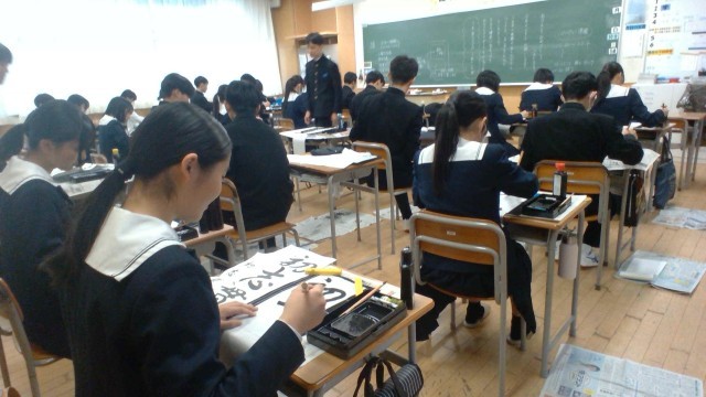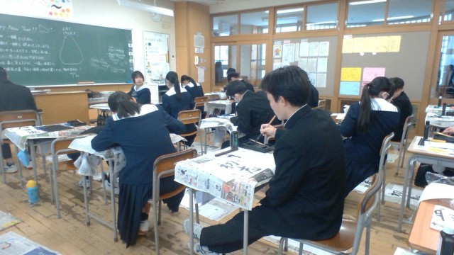 3年生、書初大会の様子です。