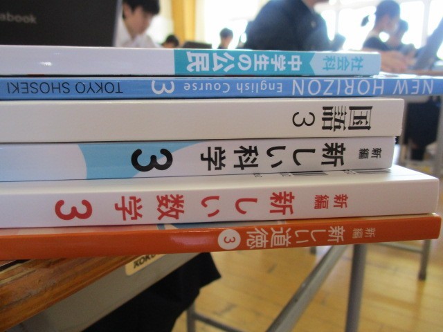 始業式後、担任発表があり、新担任・新しいクラスメイトと共に学活をしています。新しい教科書に記名したり、パソコンの設定をしたりしました。