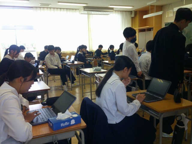 3年生は、保健体育や英語の授業では活動の振り返りを行ったり、ワークシートをじっくり確認したりし、集中して学習に取り組んでいました。