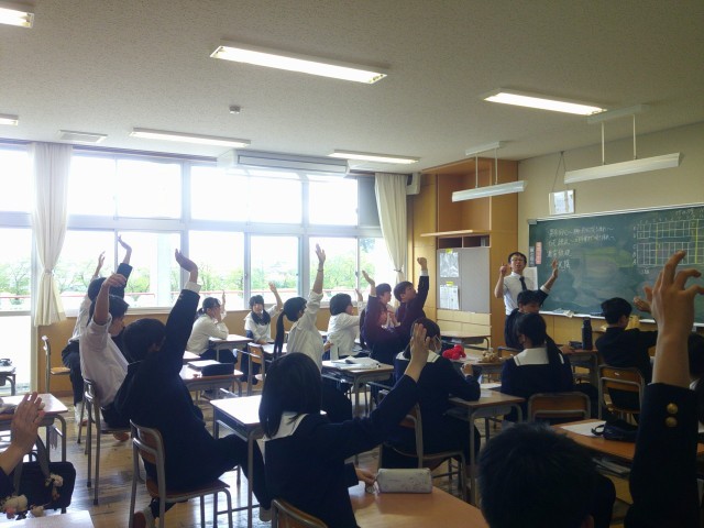 ひとつ前の記事と同じく、3年生の学年集会の様子です。