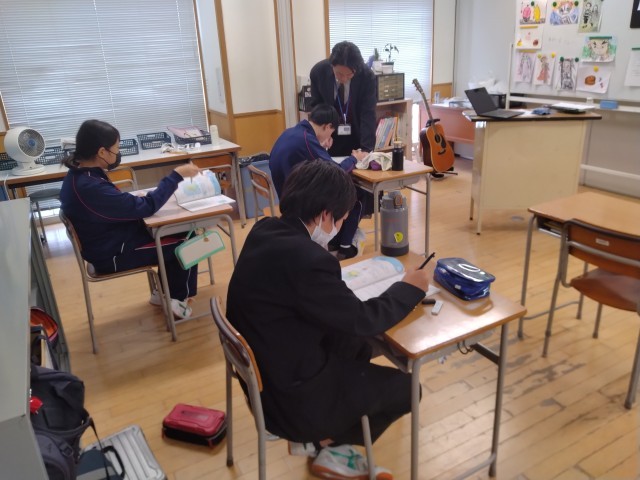 2組(中)は国語。訪問した際には、皆課題を終えていました。その後は、各自が取り組みたい課題に着手。主体性が発揮された場面。