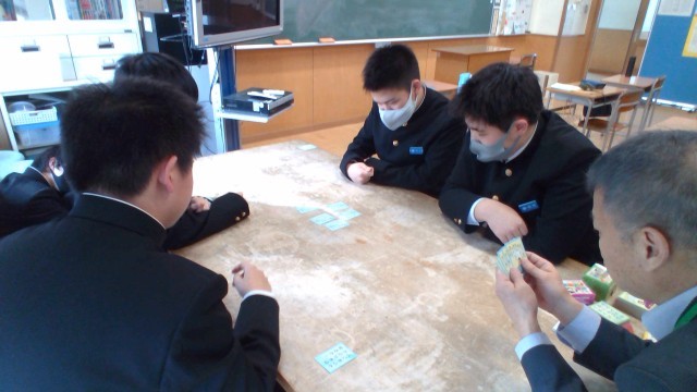 担任が読み上げる上の句に、耳を澄ませていました。
