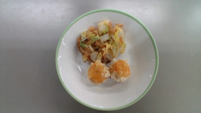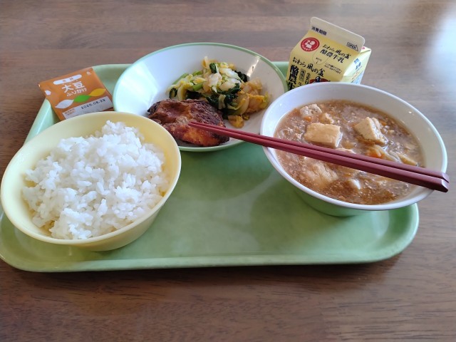 大変遅くなりました。以下【本日の献立】です。 コーンシューマイ 海藻サラダ マーボー豆腐 ごはん 牛乳
