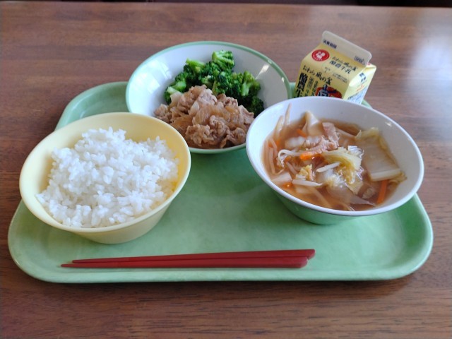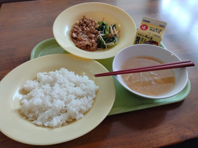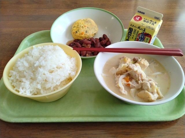 【本日の献立】 ナムㇽ 焼き肉丼 具だくさん汁 MILK