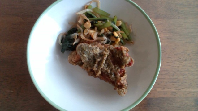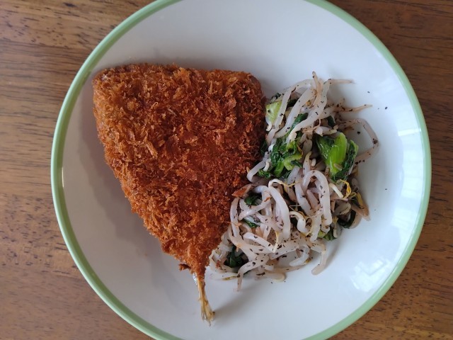 週初めから大好物のあじフライが登場し、プチハッピーな気分です。隣のスーパーで130円で売っている(火曜日だけ110円)それも大変おいしいのですが、今日の鯵フライもサクサク食感とそもそもの鯵の旨味がたまりません。