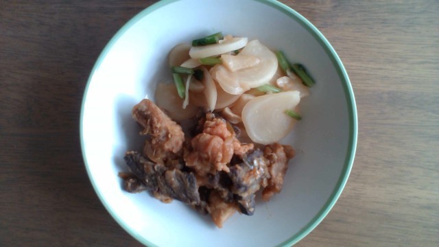 明日も押韻?という探究心が湧き、見てみたところ、オリエンタルな献立でした。いと心許なし(こころもとなし)。