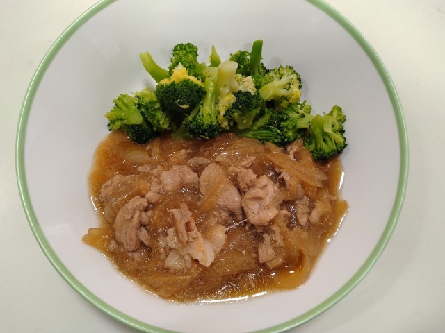 【本日の献立】 ワンタンスープ 豚肉のおろし炒め ゆでブロッコリー ごはん MILK