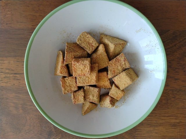 高野豆腐と言えば、煮物に含まれているものくらいしか口にしたことがなく、こうやって食べることもあるのだ、とウフフと感じました。(少し無理あり)