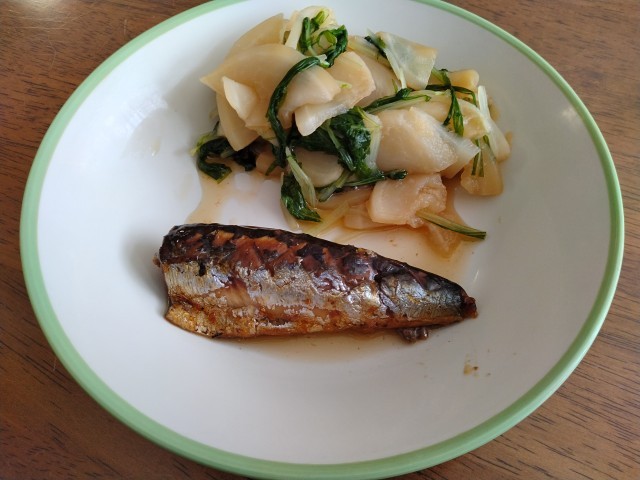 いわしの土佐煮からほのかに香る鰹節。いかにも南国土佐という感じでございました。そして、甘酢和えの水菜とかぶ、いつにも増してヘルシーな感じの献立です。あ、忘れちゃいけない、ごまと豆乳。