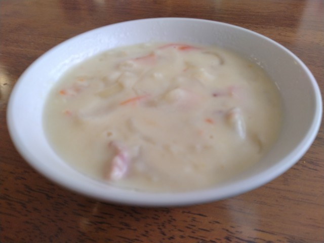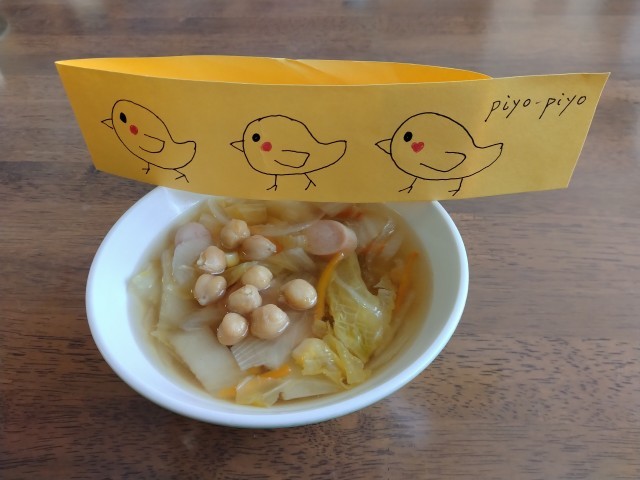 ひよこ豆【別名:ガルバンゾー(西)】は、文字通りひよこのくちばしのような突起がある豆のことで、ホクホクとした食感、しつこくない甘みが特徴だそうです。国内で流通しているものは、米、加、墨等の国々からの輸入品が主で、カレー、スープ、サラダ等の食材に用いられることが多いとのことでした。私のスープ内にもたくさん入っており、おいしくいただきました。