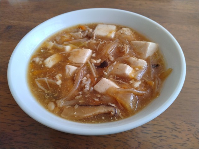 錦(にしき)とじとは、たくさんの具材を卵でとじたものであり、厚揚げ、豆腐、人参、玉葱、鶏肉、チンゲンサイ等を用いて、あたかも錦(色鮮やかな織物のこと)のごとく、色彩豊かに見せる料理だそうです。