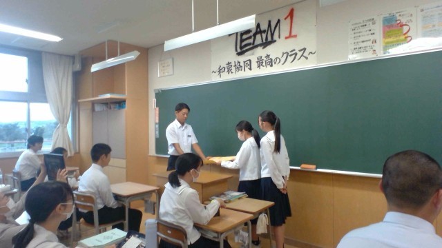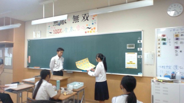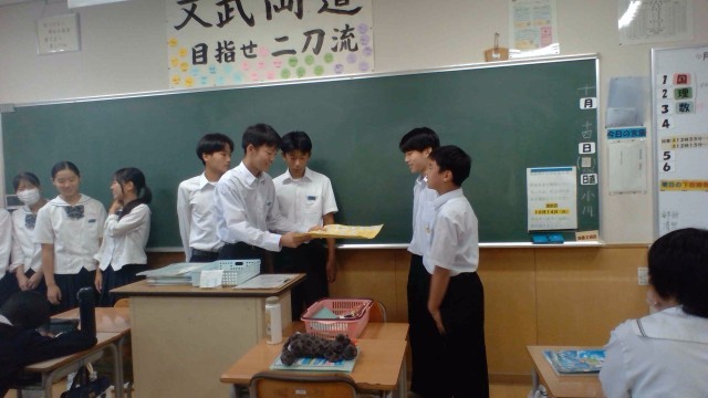 体育大会を終えて約10日。2年生から3年生へ感謝の気持ちがこもった贈り物をしています。