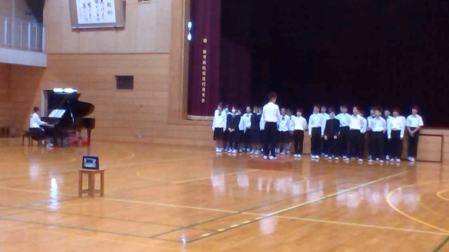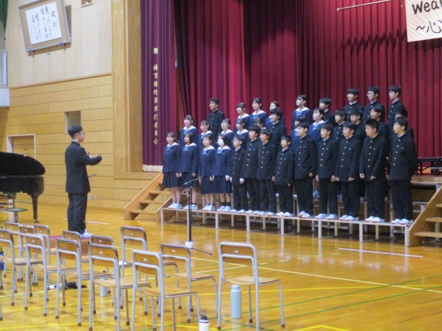 学年合唱、2組、1組の順で合唱しました。