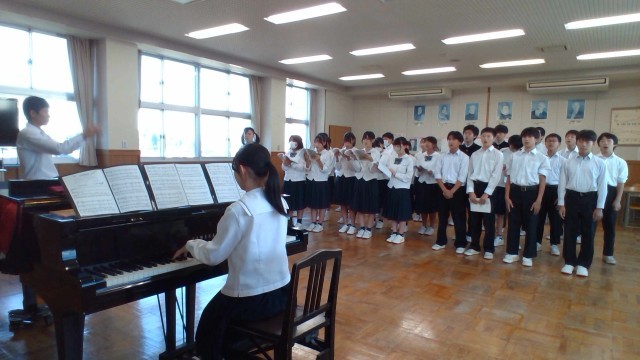 3年生の学年合唱、クラス合唱の様子です。