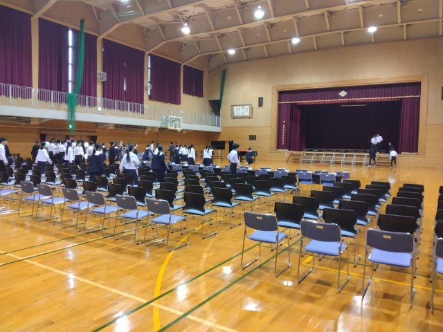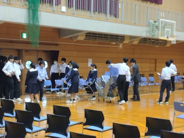 2年生が体育館の準備をしてくれました。てきぱきと動き、あっという間に整いました。