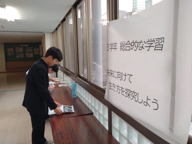 (写真右)2年3組 「扇の的-『平家物語』」 那須与一を選んでいる生徒が多い印象。説明文もなかなかに説得力あり。