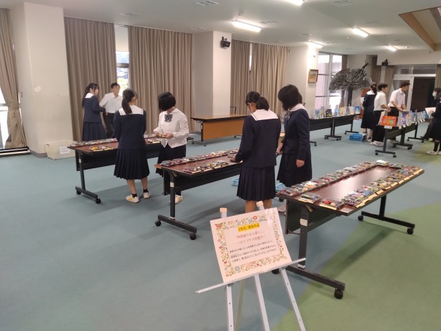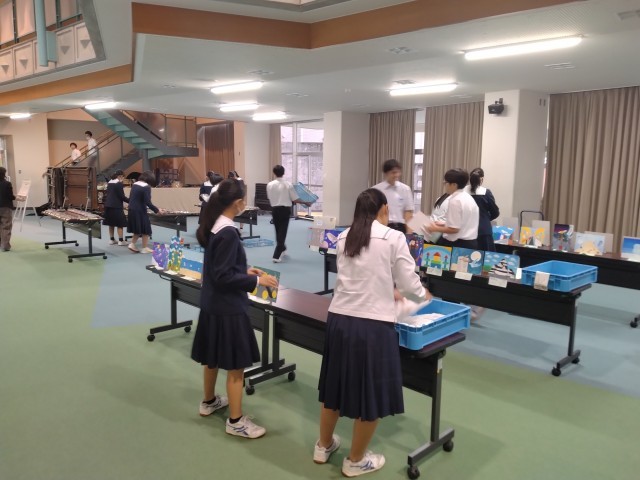 他の場所でも、部員や係生徒が作品を運んだり、並べたり。