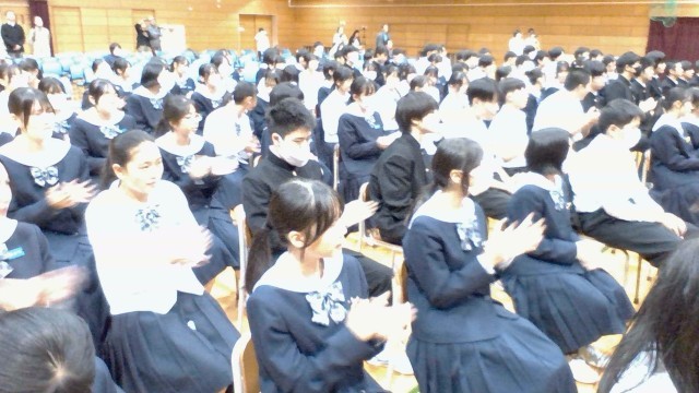 他の生徒が全て下校を完了する中、公開授業を担当してくれた3年1組の皆さん、ありがとうございました。素晴らしい態度、様子でした。最後に、今日の学びを振り返りつつの練習を、短時間ですが行っています。