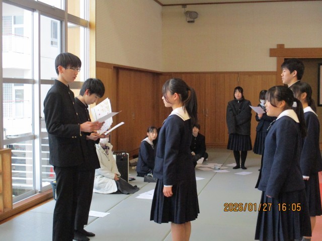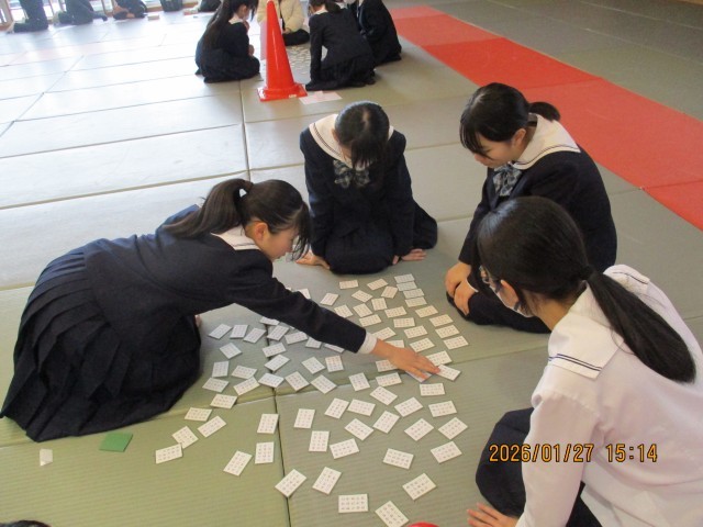 文化委員会主催の「小倉百人一首 城中王座決定戦」を実施しました。各学級のトップ3が一同に会し、熱戦を繰り広げました。