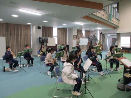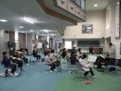 吹奏楽部の様子です。全体で音合わせをしていました。