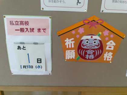 今日で1月も終わりです。明日は私立高校一般入試です。