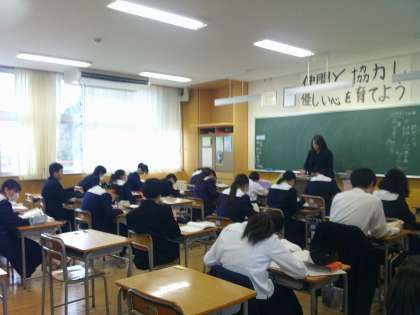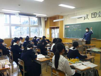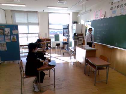 1組は体育で保健の授業を行っていました。2組は国語で教科書の内容を学習していました。3組は社会で地理の説明を聞いていました。