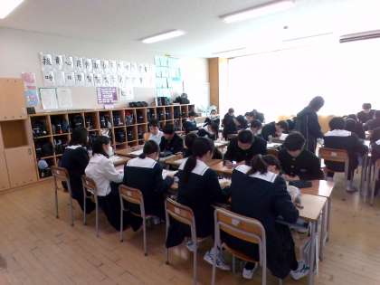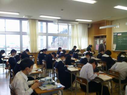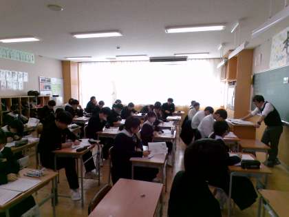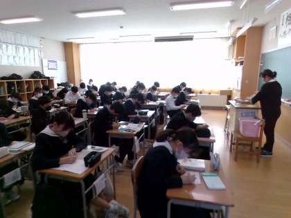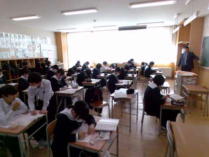 1組社会、2組理科、3組英語の様子です。どのクラスも明日の私立一般入試に向けた演習問題に取り組んでいました。