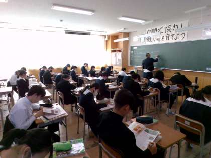 1組社会、2組保健体育、3組数学の様子です。私立一般入試まであと2日。基本的事項を中心に復習し、早めに就寝するようにしましょう。