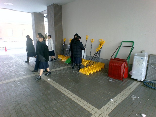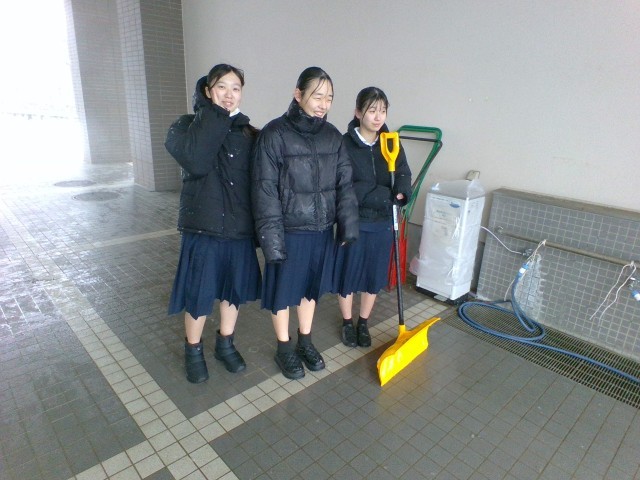 久しぶりに雪の積もる朝になりました。除雪当番は2年1組の皆さんでした。ありがとうございました。