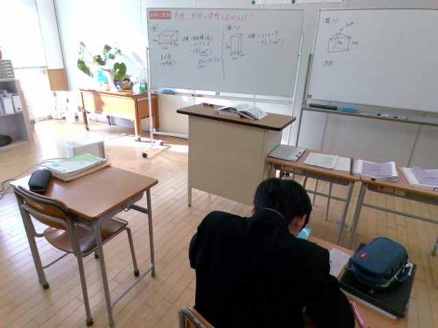 2組数学の様子です。角柱、円柱の体積の学習をしました。